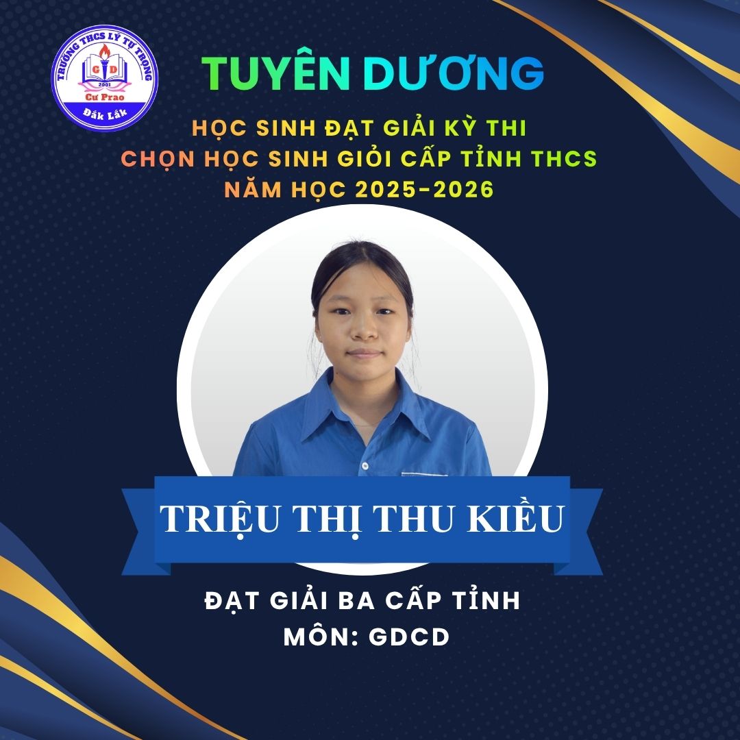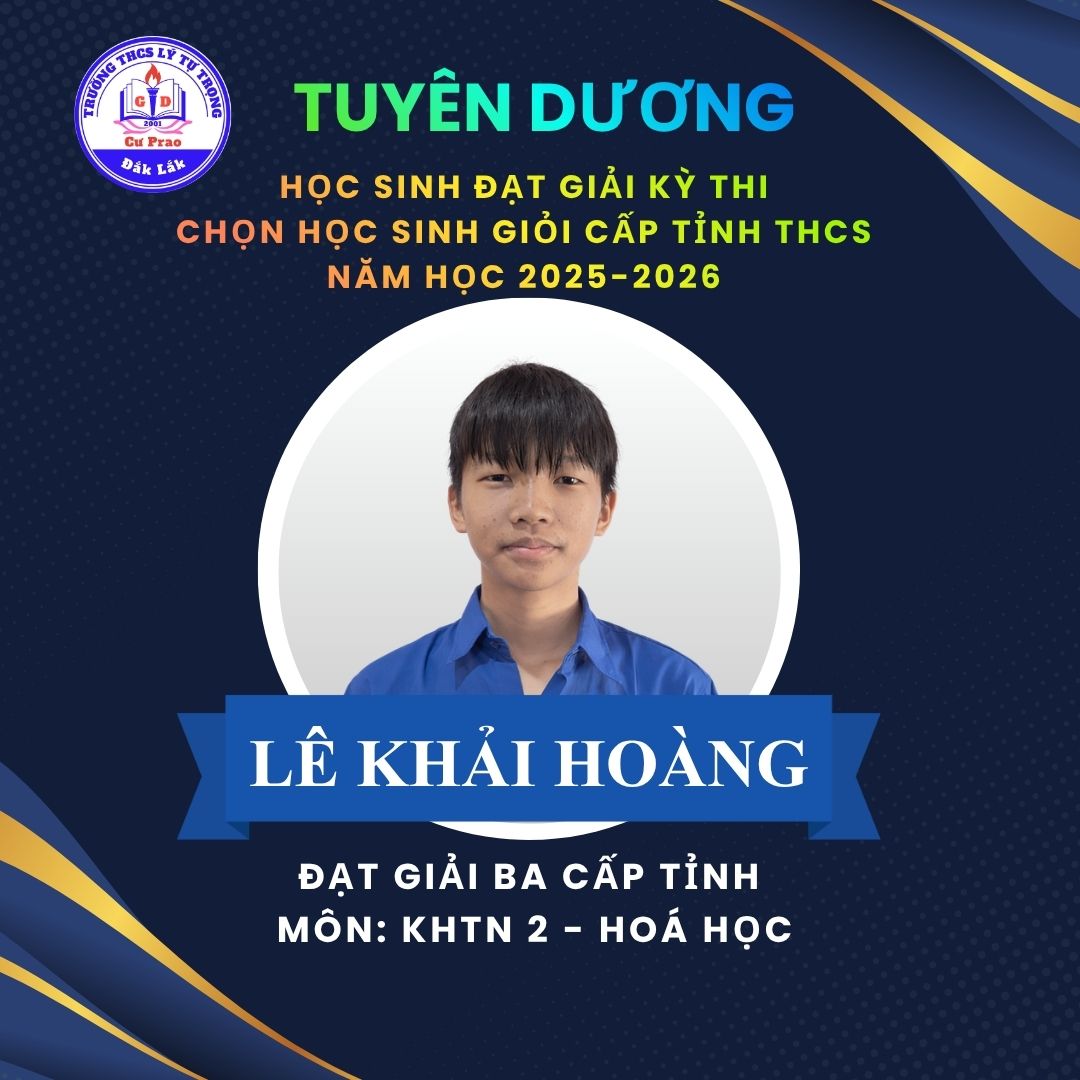 Trường THCS Lý Tự Trọng trân trọng thông báo và chúc mừng kết quả xuất sắc của các em học sinh tại Kỳ thi chọn Học sinh giỏi cấp tỉnh THCS năm học 2025-2026.
