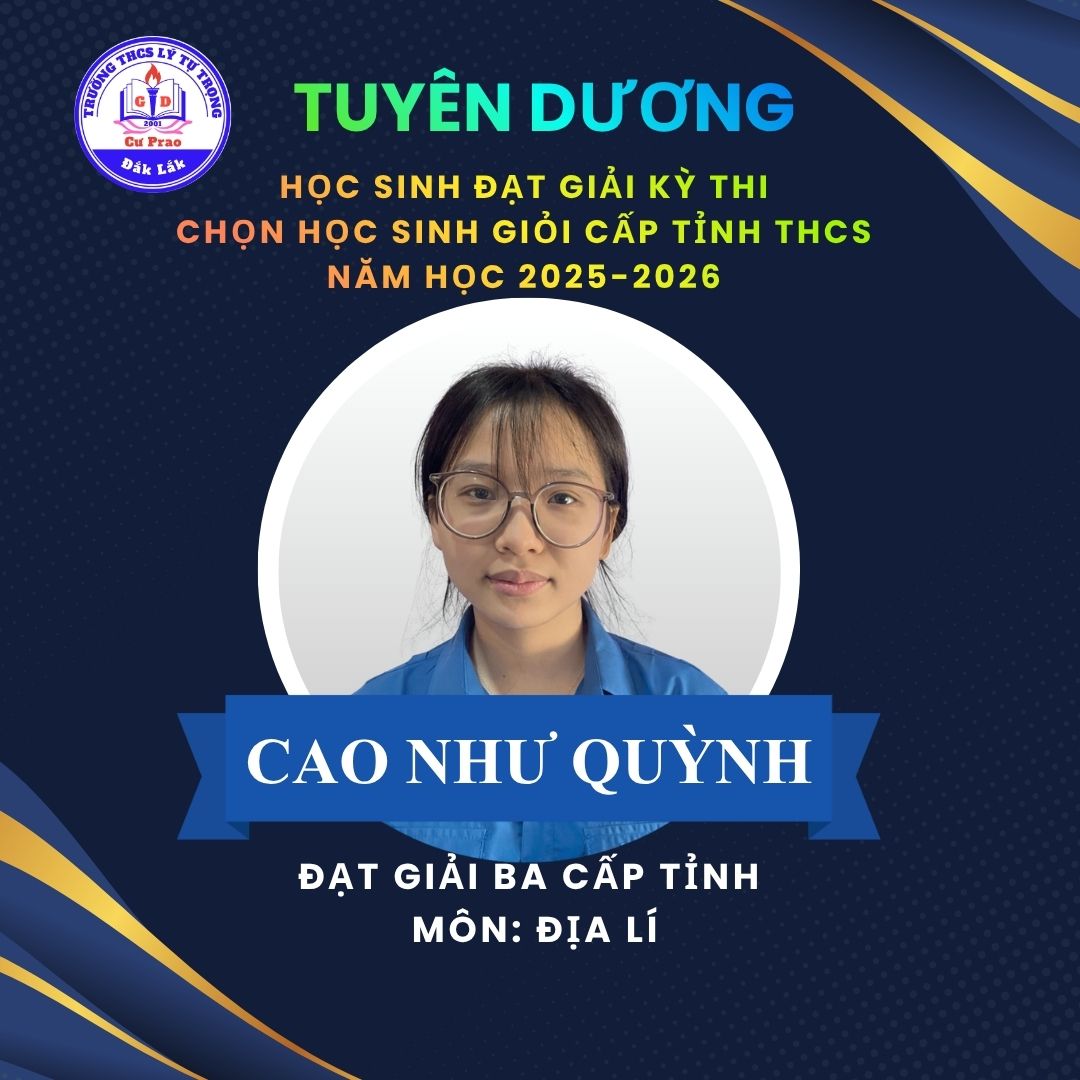 Em Cao Như quỳnh đạt giải Ba môn Địa lí cấp tỉnh