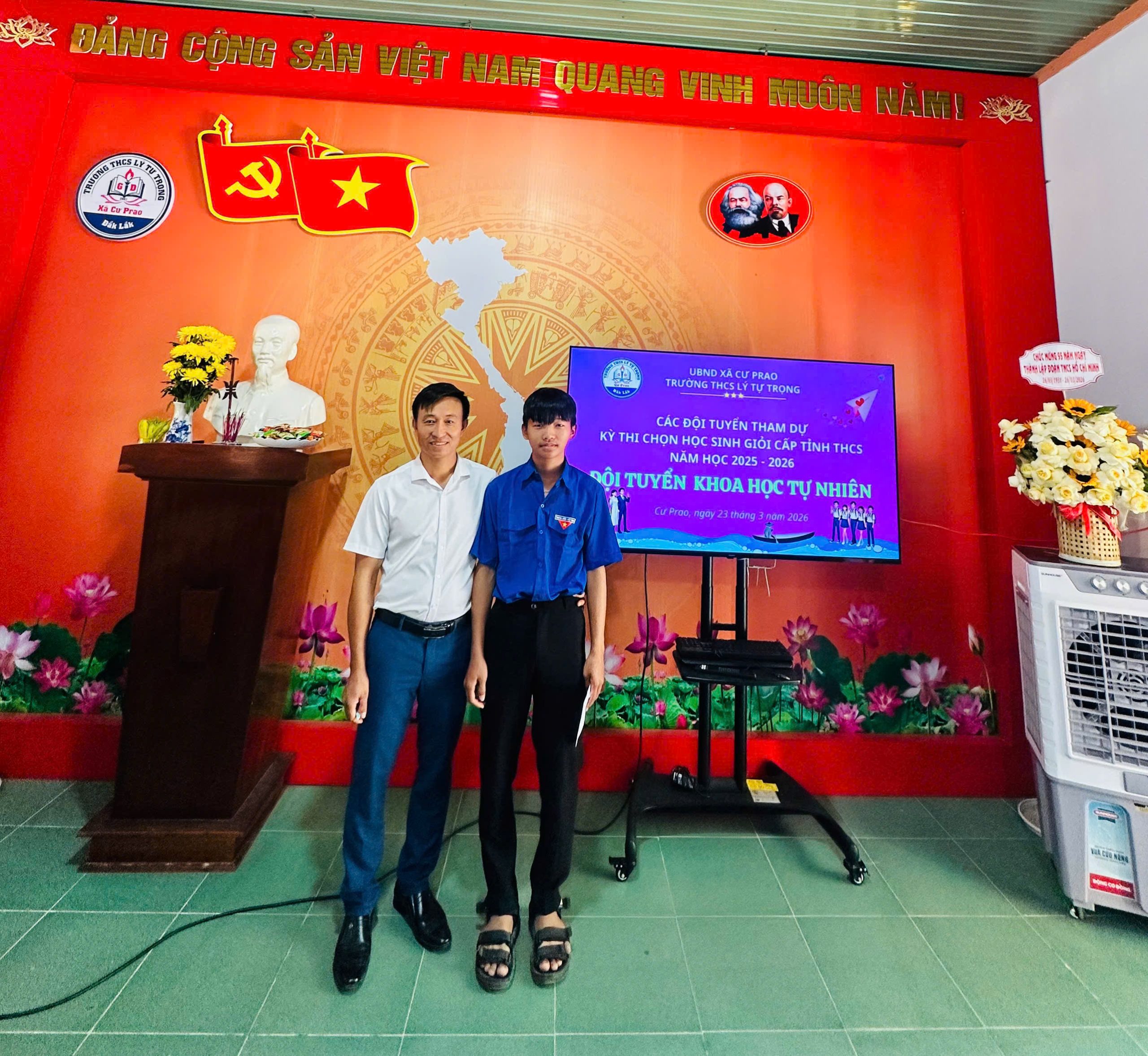 Thầy Trương Xuân Tuấn và em Lê Khải Hoàng đạt giải Ba môn KHTN 2 (Hóa học) cấp tỉnh